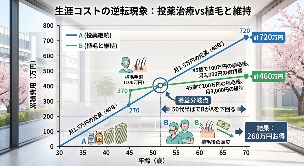 4. 生涯コストシミュレーション:薬vs植毛、20年後の収支決算