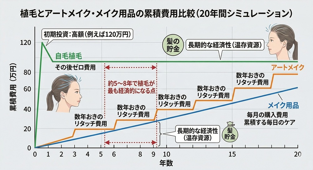5. 費用対効果:一生のメイク代と自毛植毛、どちらが賢い?